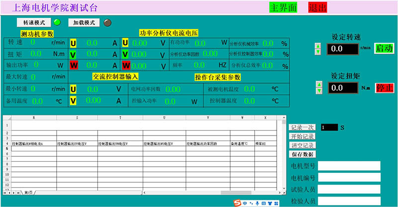 1 本軟件運行于WINDOWS XP平臺,適用于電動汽車用電機及控制器臺架性能試驗和耐久性試驗。可由操作人員設置測量參數的名稱、單位、量程、報警值等內容。實時顯示各項測量參數值,打印各種曲線報表。
