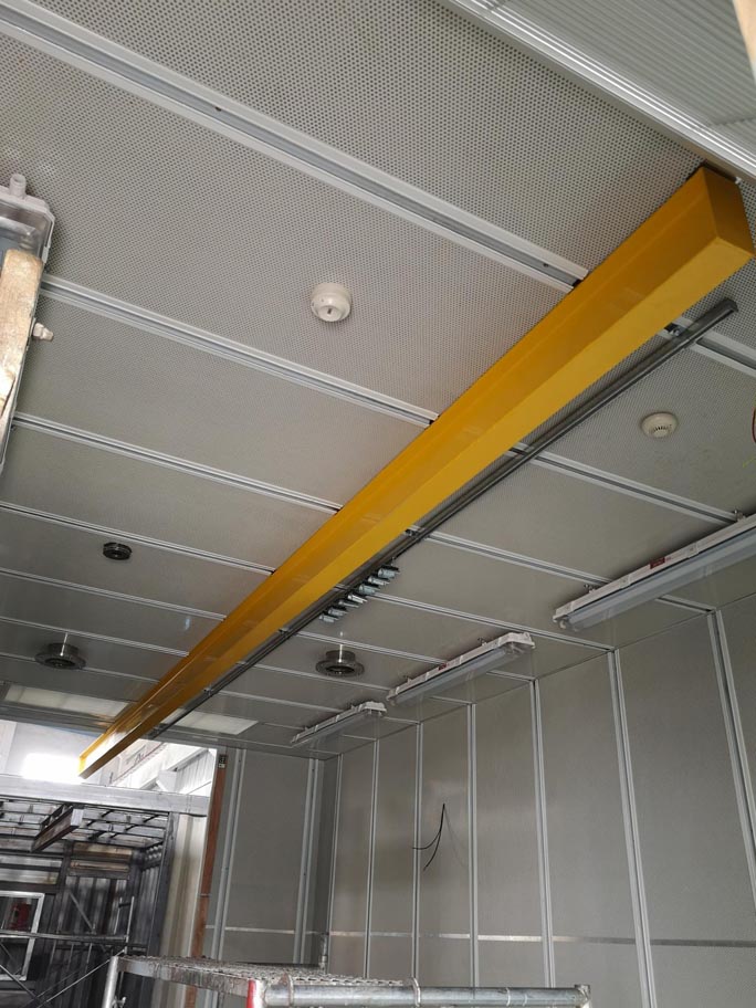 在試驗臺上方設置單軌葫蘆軌道(20#工字鋼),承載能力2T,軌道伸出屋外。并配齊掛線導軌及線夾。
